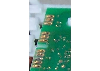 По словам хозяйки машина выполнила всю программу (70 градусов, без дополнительных функций), индикатор времени показал нули, после чего она машину выключила, открыла, а там вся посуда и внутренняя поверхность поверхность ПММ покрыты мутно-белым налётом. Через некоторое время повторно включила машину, но машина не позволяла отменить программу 70 градусов, на индикаторе времени стояло 45 минут, на нажатие reset индикатор высвечивал CL. Где-то в мае по гарантии мастер из бошевского сервиса заменил диспенсер моющего средства, т.к. машина иногда (совершенно безсистемно) открывала его в произвольный момент времени (по словам хозяйки, бывало даже за несколько минут до завершения программы). После замены месяца два машина работала "как часы". И вот такой "облом". Мои попытки просто нажимая кнопки, удерживая reset, образумить машину ничего не дали. Время на таймере уменьшалось, машина "тупо" мыла посуду, на любое нажатие управляющих клавиш индикатор высвечивал CL. Осмотр обеих плат показал отсутствие повреждённых элементов и "дорожек". Единственное к чему можно было придраться - незначительное подгорание контакта на одной стороне платы (смотри приложенный снимок), хотя на противоположной стороне состояние контакта почти идеальное (пропайка по переходному отверстию). От безысходности прочистил ластиком контакты на обеих платах. Собрал - всё по-прежнему. Ещё некоторое время безрезультатно понажимал секунд по 5 reset и, вдруг, текущнее время сбрасывается, на индикаторе высвечивается, как положено, 1 минута. Машина стала слушаться управляющих кнопок. Прогнал короткую программу - без нареканий. Хозяйка позвонила, что и 70 градусов у неё прошла без претензий, посуда чистая. Я, правда, сглупил, не проследив сразу, куда идет провод от этого контакта. Потом уточнять не было времени, но пара проводов идёт на геркон, а другая пара на основной "движок". Может кто-нибудь объяснить поведение машины, и скинуть "в личку" коды ошибок.