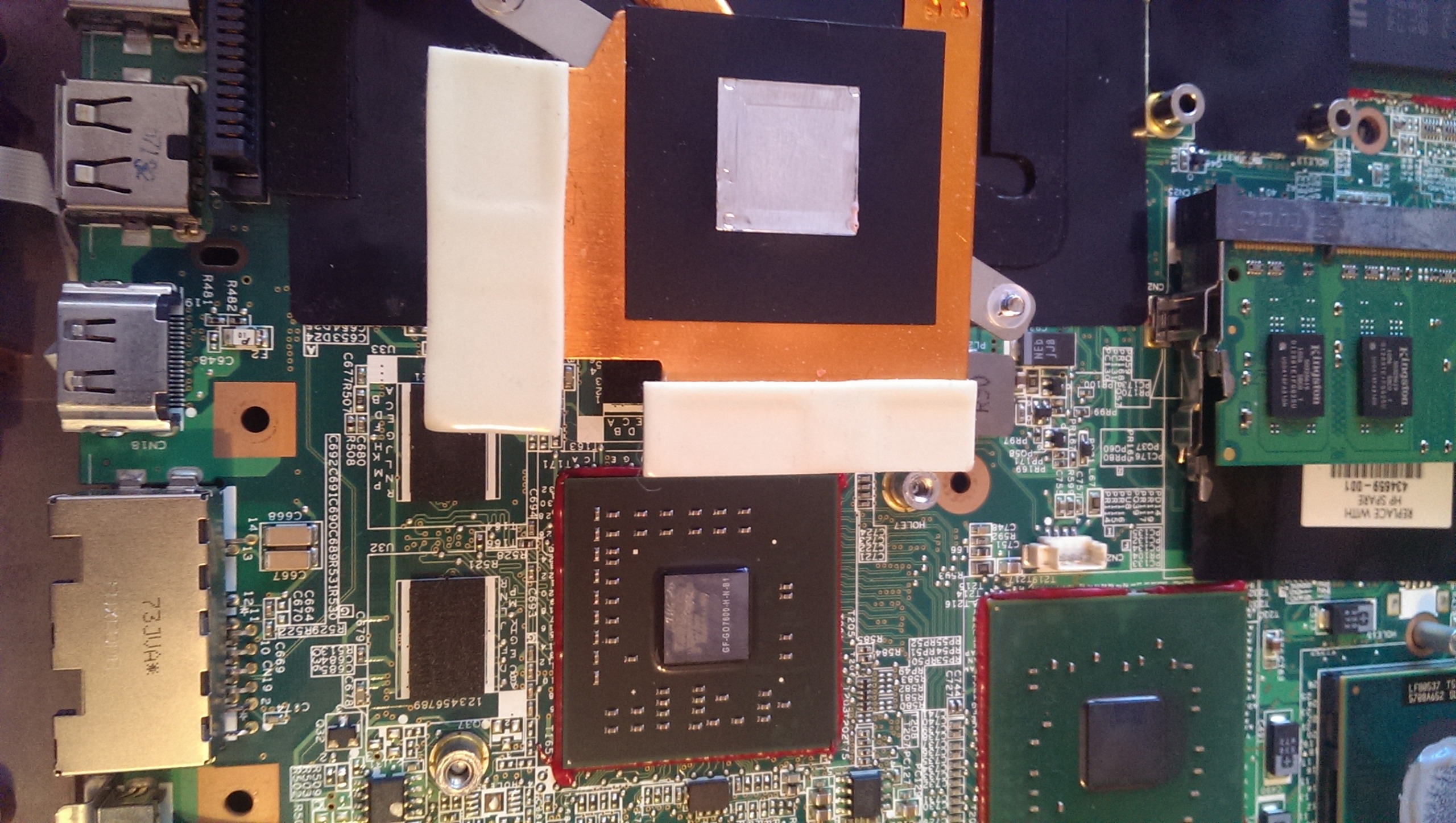 Добавлено через 9 минут Термопрокладки могут стоять между радиатором и прилегающем к нему кристаллом видео чипа и северного моста, как на данной плате не знаю.